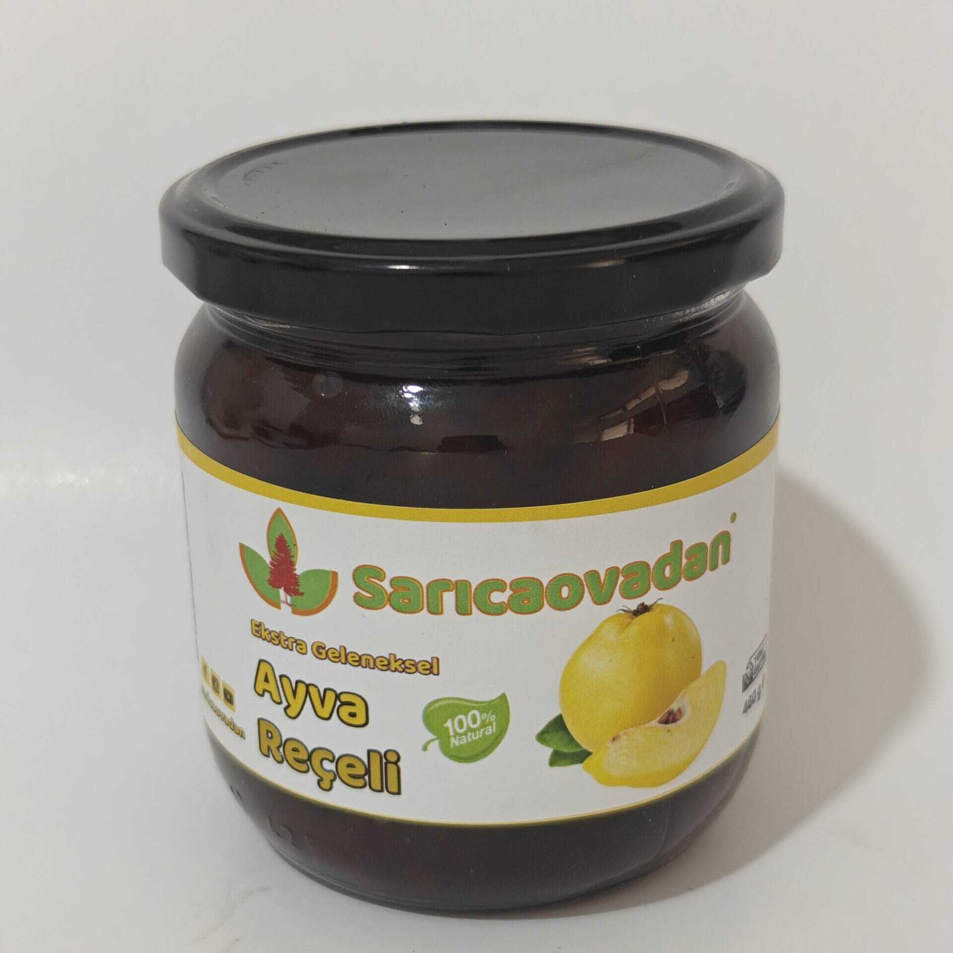 Ayva reçeli 425 cc kavanozlarda net 460 gr olarak gönderilir. %100 pancar şekerinden üretilmiştir. Koruyucu ve katkı içermez. El yapımıdır. Meyve oranı en az %70 dır.