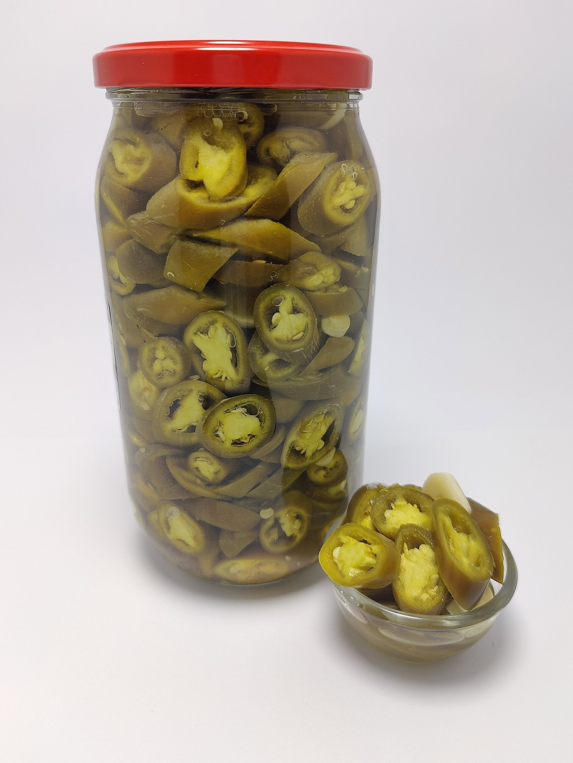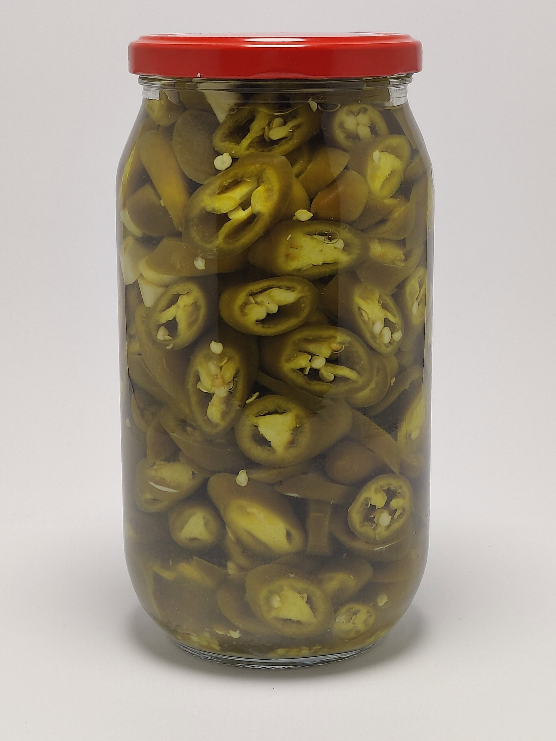 Jalepeno biber turşusu 1000 cc cam kavanozda.