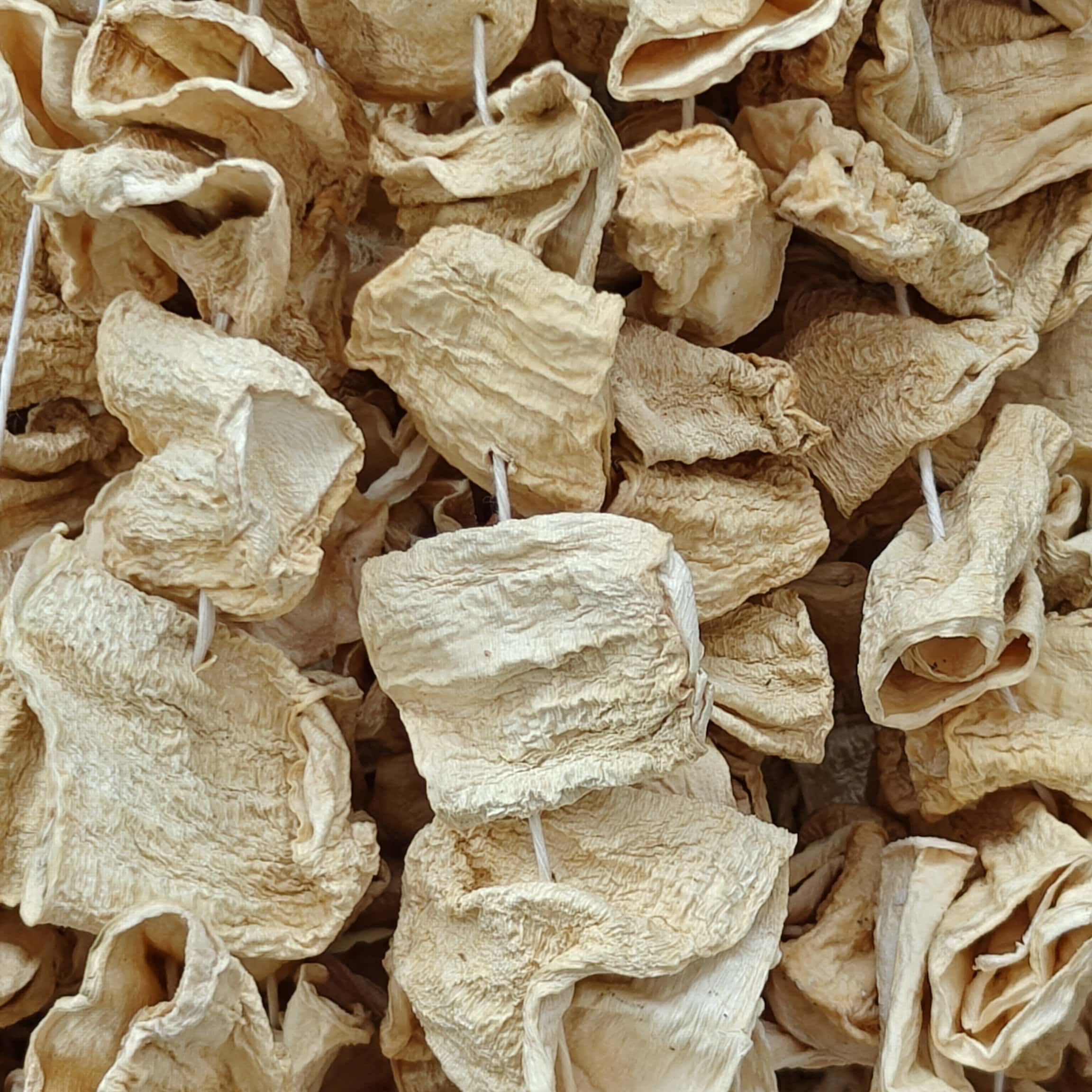 Güneş kurusu dolmalık kabak kurusu 24 – 25 li Ege Bölgesi’nin tarla kabakları mevsiminde oyulur ve güneşte kurutulur. Dolmalar için idealdir. Diğer kuru sebzelere göre daha yumuşaktır.